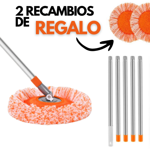 Esta mopa de microfibra especial dispone de un cabezal giratorio 360º y un mango telescópico que te permitirá llegar a todos los rincones y sin cansarte. Con gran capacidad de arrastrar la suciedad tanto seco como mojado